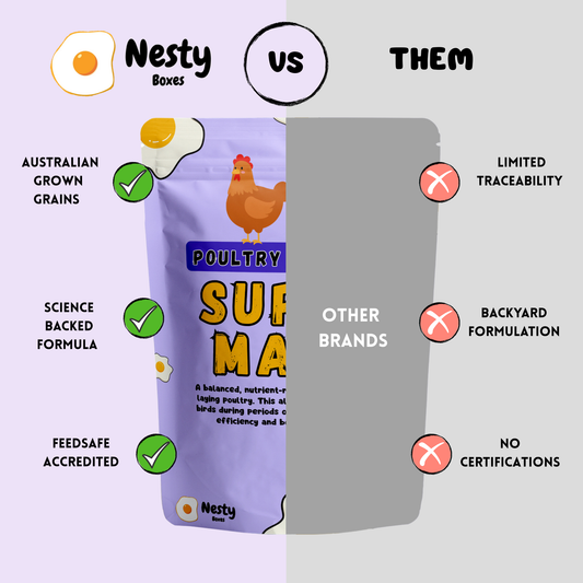 Chicken Feed formulated by an animal nutritionist who specialises in productivity and overall wellbeing in livestock including poultry, ensuring our chicken feeds are balanced and nutrient rich. Made in small batches to ensure quality and consistency and tested extensively for palatability and utilisation.
