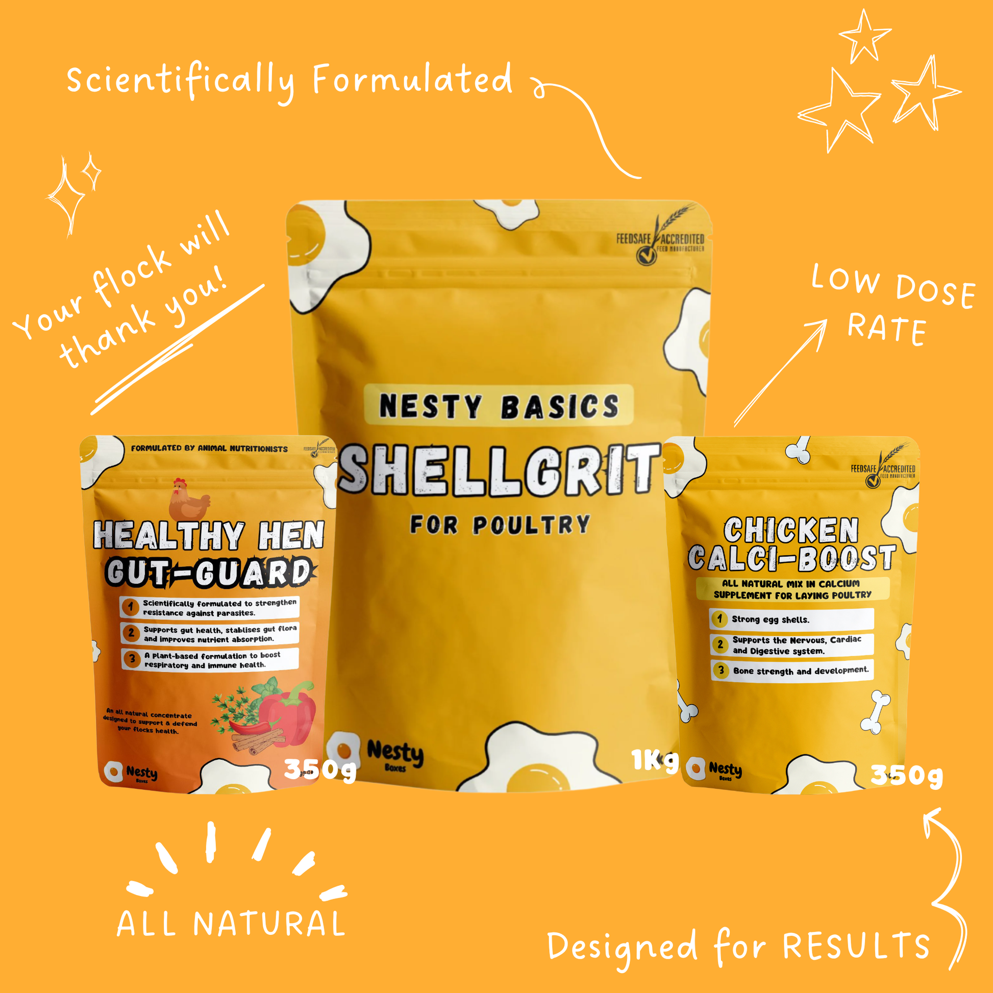 This is the perfect starter kit for customers getting into chicken keeping or those wanting to top up on essentials. The Nesty Chicken Starter Kit includes our some of our signature feeds and health products to keep your flock in their best condition.